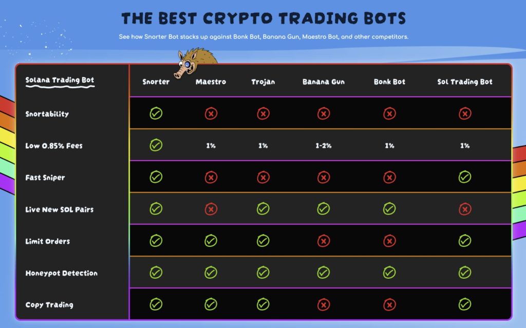 Ils comptent beaucoup sur l’indispensable Fast Sniper, mais aussi sur les autres atouts de Snorter qui peuvent faire la différence. On pense à la protection MEV pour éviter le front-running, à l’outil de détection de honeypots pour filtrer les contrats malveillants, et au copytrading. Ce dernier permet aux débutants de reproduire les actions des traders les plus performants.