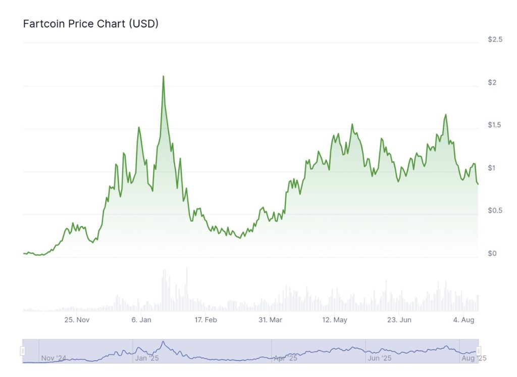 Prenons le Fartcoin ($FARTCOIN) comme exemple. Lancé sur Pump.fun, il est rapidement passé de 0,04 $ à un ATH à 2,11 $.