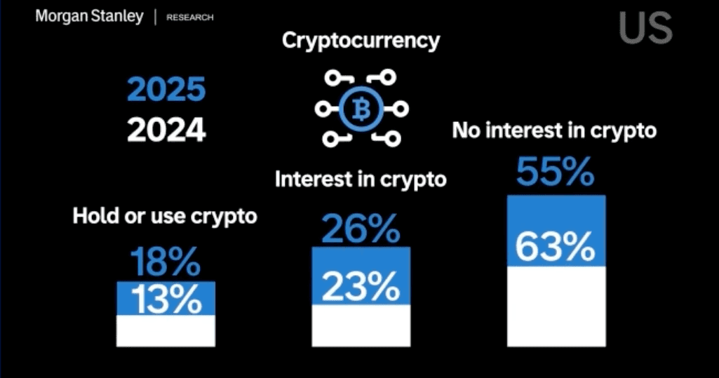 Le marché est de plus en plus mature, les ETF cartonnent, et les cryptos s’imposent dans les portefeuilles institutionnels. Pourtant, chez la Génération Z, l’enthousiasme ne suit pas. Un sondage mené par Morgan Stanley en août 2025 montre un contraste frappant : l’IA et les robots passionnent la Gen Z, tandis que la crypto continue de susciter peu d’intérêt. Comment expliquer ce décalage entre deux technologies perçues comme l’avenir ? Décryptage d’une fracture générationnelle surprenante.