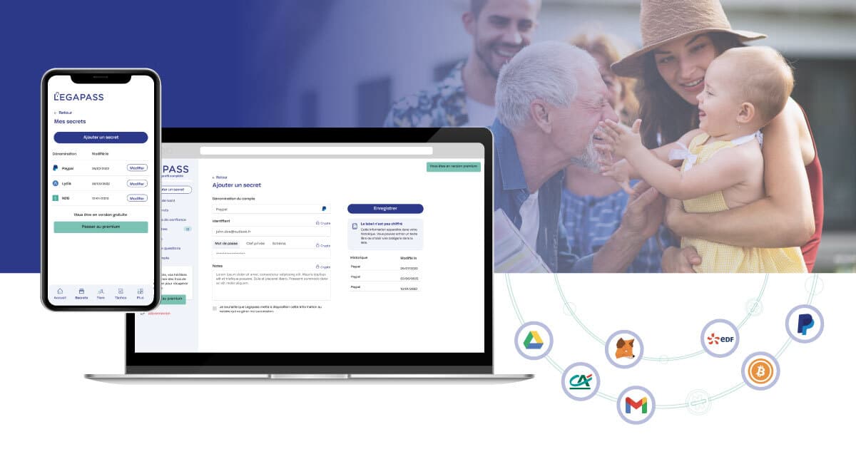 Dans le monde, 4 millions de bitcoins seraient perdus, selon Chainanalysis. Autre statistique, près d’une fois sur deux le décès d’un dirigeant d’entreprise entraîne la fermeture de la société dans les cinq années qui suivent. Face à ces risques liés à la mort, la startup Legapass, basée à Nice, a développé une solution de coffre-fort virtuel, et propose de s’occuper de l’héritage numérique des particuliers et des entreprises : codes d’accès aux messageries, réseaux sociaux, photos souvenirs, comptes bancaires en ligne, logins d’ordinateur… ou encore la seed-phrase donnant accès à ses crypto-monnaies ou à ses NFT.