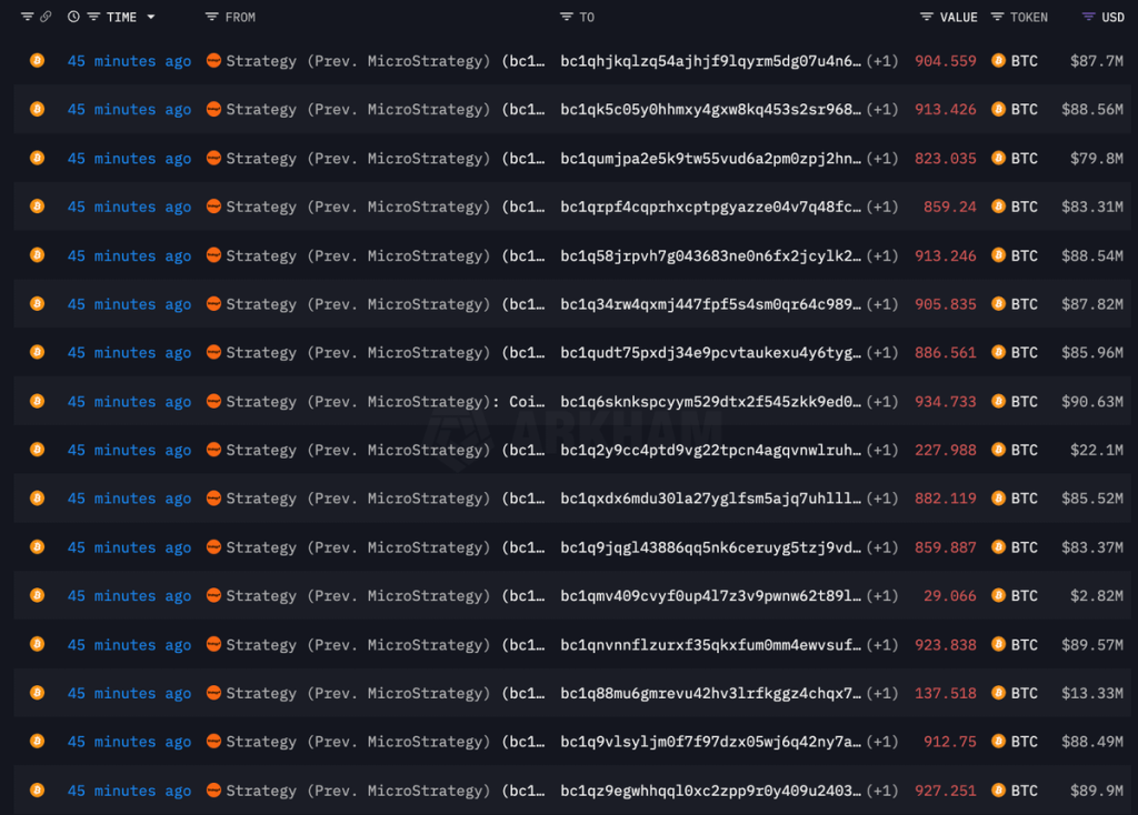 La panique a éclaté lorsque Arkham a signalé d’importants mouvements de Bitcoin provenant des portefeuilles liés à Strategy laissant supposer une vente massive des actifs. Une fois révélée, une rumeur s’est répandue comme une trainée de poudre laissant croire que Michael Saylor, le CEO de Strategy avait fini par capituler. Sachant en plus que l’entreprise détient 641 000 BTC d’une valeur d’environ 67 milliards de dollars soit 3 % de la supply totale, toute vente aurait des conséquences drastiques sur le marché en général.