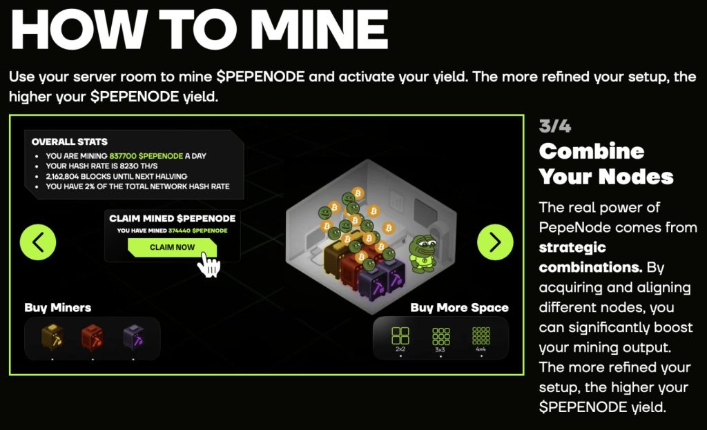 Pour comprendre le fonctionnement, il faut d’abord savoir ce que fait vraiment PepeNode. Le projet développe un jeu de minage virtuel qui invite les utilisateurs à extraire des jetons PEPENODE, mais sans avoir besoin d’acheter du matériel coûteux ni avoir un configuration complexe.