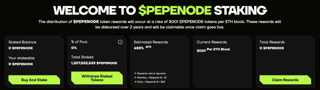 Cette utilité concrète existe grâce au protocole de staking de PepeNode. Celle-ci offre un rendement annuel dynamique de 653 % et transforme le temps d’attente en période de profit.