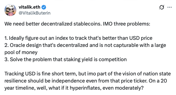 Dans ses prises de parole récentes, Vitalik Buterin met en avant trois nœuds techniques qui freinent l’émergence de stablecoins décentralisés robustes.