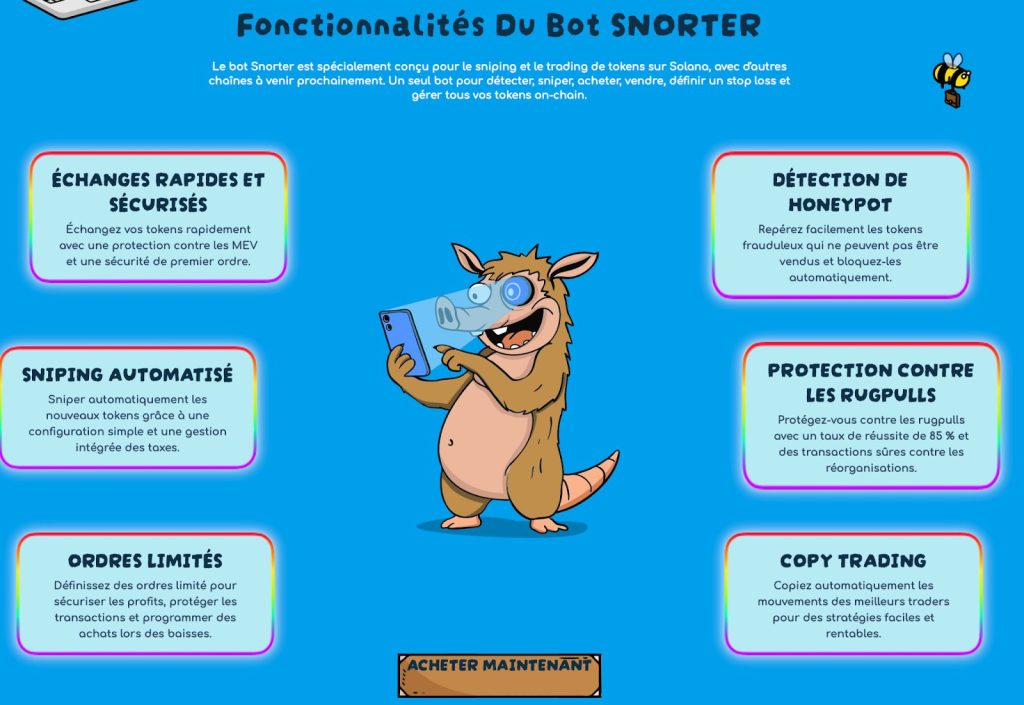 S’il y a bien un projet qui mélange esprit meme et vraie utilité, c’est Snorter. Ce bot de trading sur Telegram permet aux utilisateurs de “sniper” les nouveaux tokens avant qu’ils ne deviennent viraux. Et avec la vague d’altcoins qui revient grâce à uptober, les traders ne s’y trompent pas : le volume de $SNORT est en hausse.
