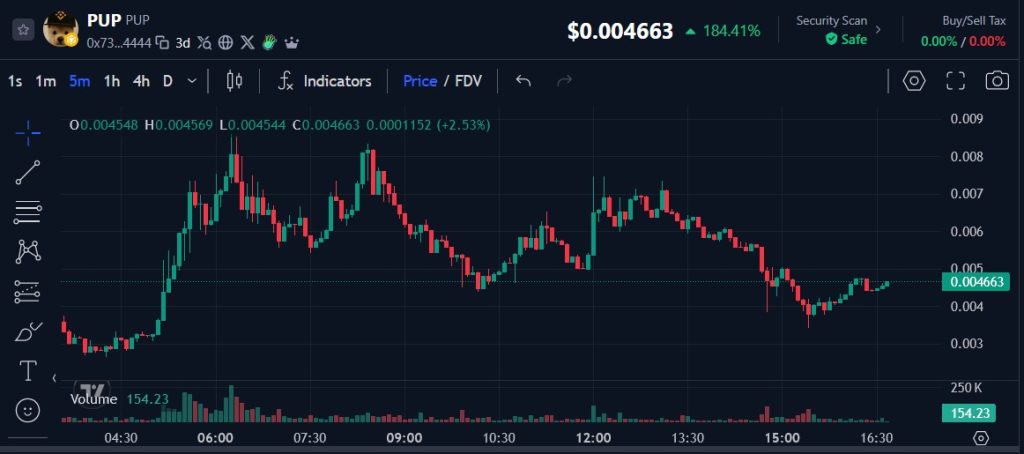 Le contrat est vérifié, le token n’est pas un honeypot, et le projet se distingue par une liquidité solide (438 000 $) pour un memecoin encore jeune. Le token a l’air séduit les communautés Telegram et X, où le hashtag #PUP commence à fleurir.