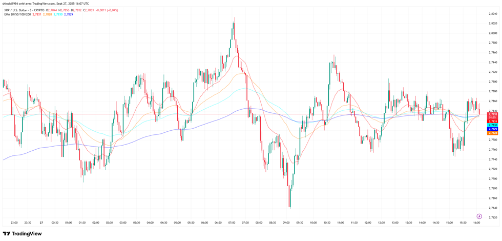 Malheureusement, le succès massif de Ripple en Thaïlande est encore insuffisant pour créer le départ de feu nécessaire à la prochaine explosion. Actuellement, XRP évolue autour de 2,78 $ après avoir défendu à plusieurs reprises le support des 2,70 $. Les acheteurs tiennent la ligne, mais la pression reste forte.