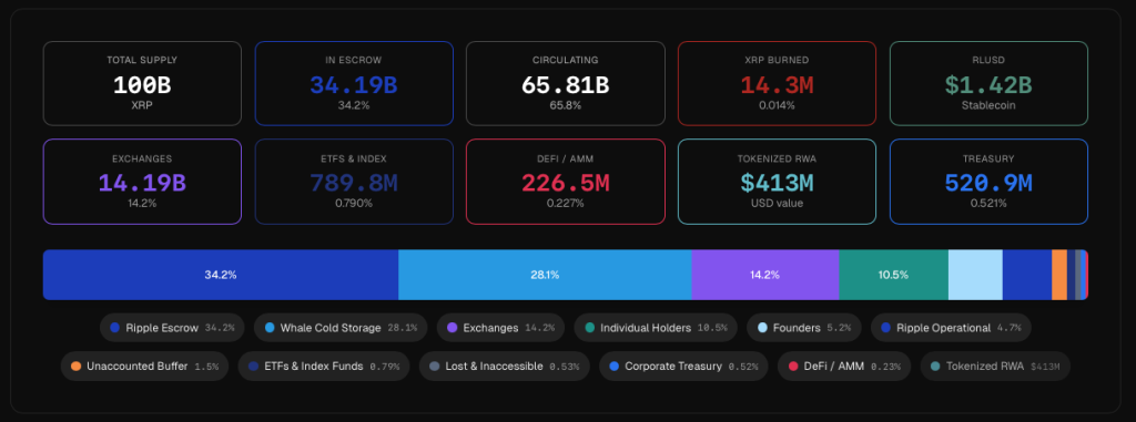 Le premier risque est structurel et concerne l’offre. Le mécanisme d’escrow mis en place prévoit jusqu’à 1 milliard de XRP libérable chaque mois, même si une partie peut être re-verrouillée. Début janvier 2026, des données on-chain indiquaient qu’environ 700 millions de XRP auraient été remis sous escrow après le déverrouillage mensuel, laissant un reliquat potentiellement mobilisable. Dans un marché déjà fébrile, cette mécanique nourrit régulièrement la crainte d’une pression vendeuse, même lorsqu’elle ne se matérialise pas immédiatement.