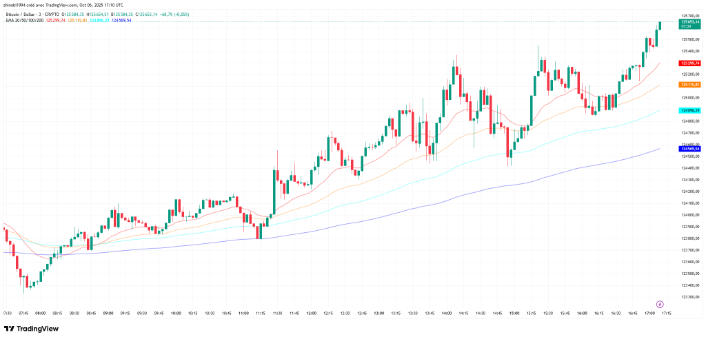 En effet, l’ATH à 125,337.53 $ traduit d’une certaine manière, la confiance du marché dans un environnement monétaire plus souple. Les traders anticipent désormais un assouplissement des politiques fiscales et monétaires aux États-Unis, dans un contexte de shutdown gouvernemental prolongé.