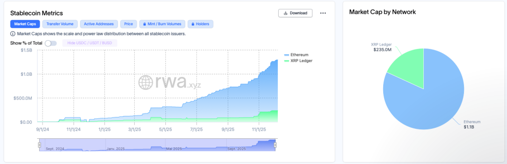Le stablecoin de Ripple, le RLUSD, marque l’une des plus fortes croissances du secteur, affichant une hausse de sa valorisation de 23 %, bien au-delà d’actifs comme l’USDS ou l’USDC.
