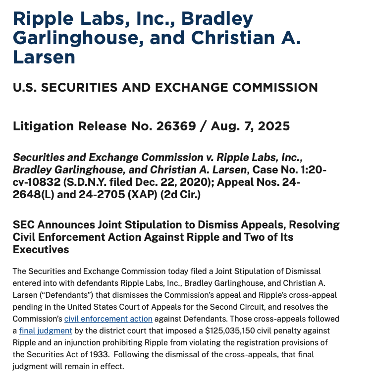 Le principal frein psychologique s’estompe : le contentieux entre le régulateur américain et Ripple s’est achevé en août 2025. La justice a distingué les ventes à des investisseurs institutionnels (assimilées à des offres de titres non enregistrées) des ventes sur marchés secondaires au grand public. Ripple a accepté une amende de 125 millions de dollars, et une injonction encadre les ventes institutionnelles futures.