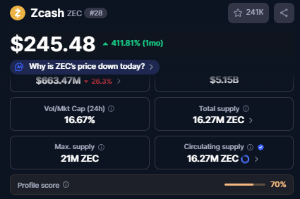 Sur les marchés à terme, la dynamique s’accélère. L’open interest sur les contrats ZEC a bondi de 22 % en 24 heures, atteignant 303 millions de dollars. Un signe clair d’afflux spéculatif et d’intérêt institutionnel naissant.