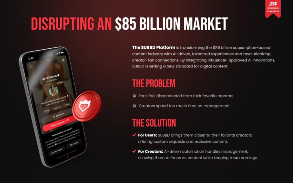 Μέσω AI εργαλείων, token gated περιεχομένου και ενεργής συμμετοχής της κοινότητας, το $SUBBD αποκτά πραγματική χρησιμότητα μέσα στην πλατφόρμα.