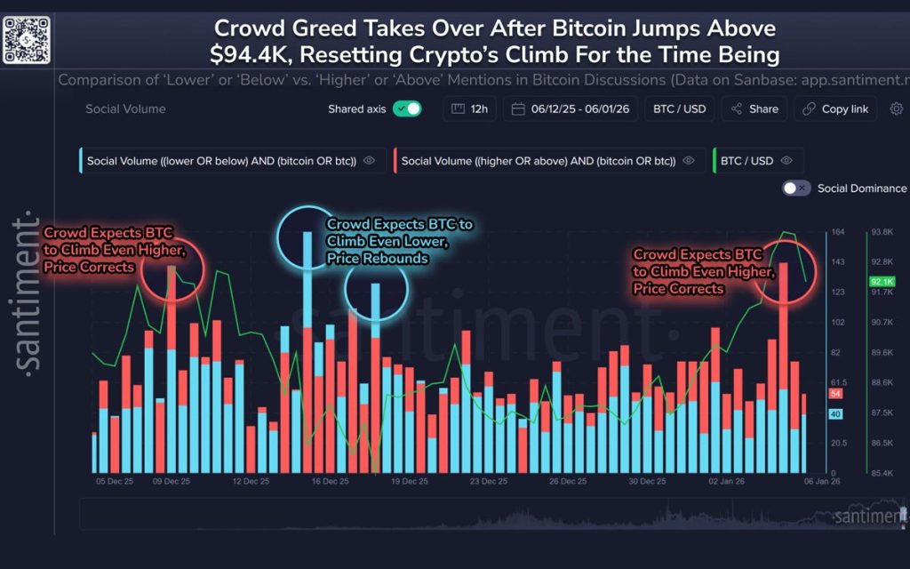 Η Santiment επισημαίνει ότι σε προηγούμενους κύκλους, παρόμοια ξεσπάσματα αισιοδοξίας ακολουθήθηκαν από απότομες διορθώσεις.
