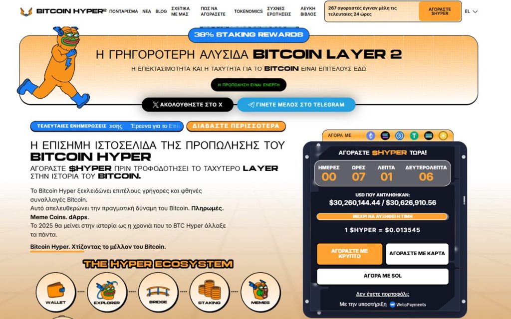 Αν θέλετε να ενημερωθείτε περισσότερο για το Bitcoin Hyper, την προπώλησή του καθώς και τους λόγους για να συμμετάσχετε στο έργο, δεν έχετε παρά να επικσεφτείτε την επίσημη ιστοσελίδα του.