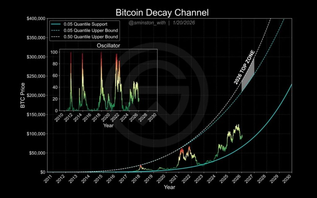 Με βάση ιστορικά μοντέλα τιμής και τη συμπεριφορά προηγούμενων κύκλων, η κορυφή του 2026 τοποθετείται σημαντικά υψηλότερα από τα σημερινά επίπεδα, ακόμη και πάνω από τις 200.000 δολάρια.