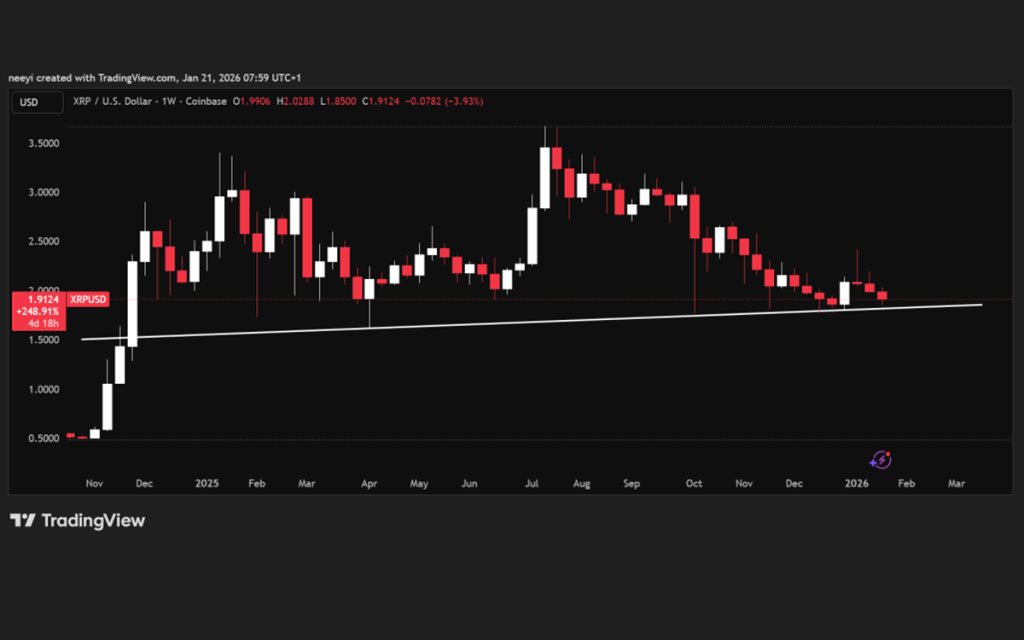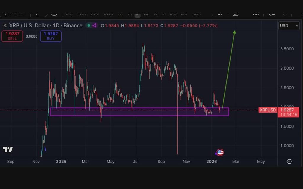 Αυτή την περίοδο, το XRP διαπραγματεύεται κοντά στα 1,90$, επίπεδο που λειτουργεί ως σημείο ισορροπίας για πάνω από έναν χρόνο.