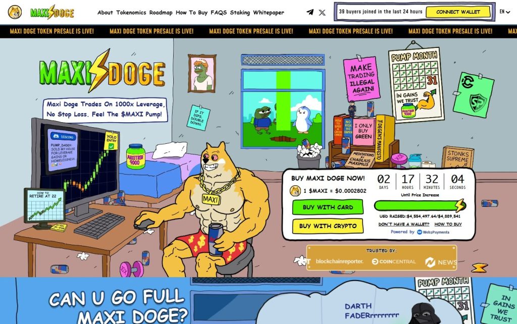 - Maxi Doge: Meme coin με cult κοινότητα χαμηλή τιμή και δυναμικό χαρακτήρα