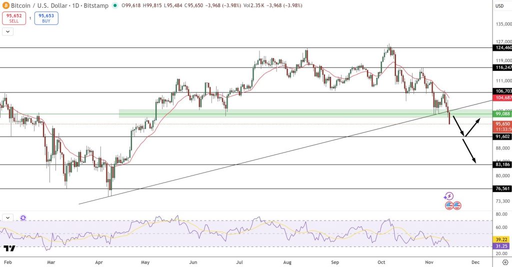 A Bitcoin 96 ezer dollár alatt – jön az összeomlás?