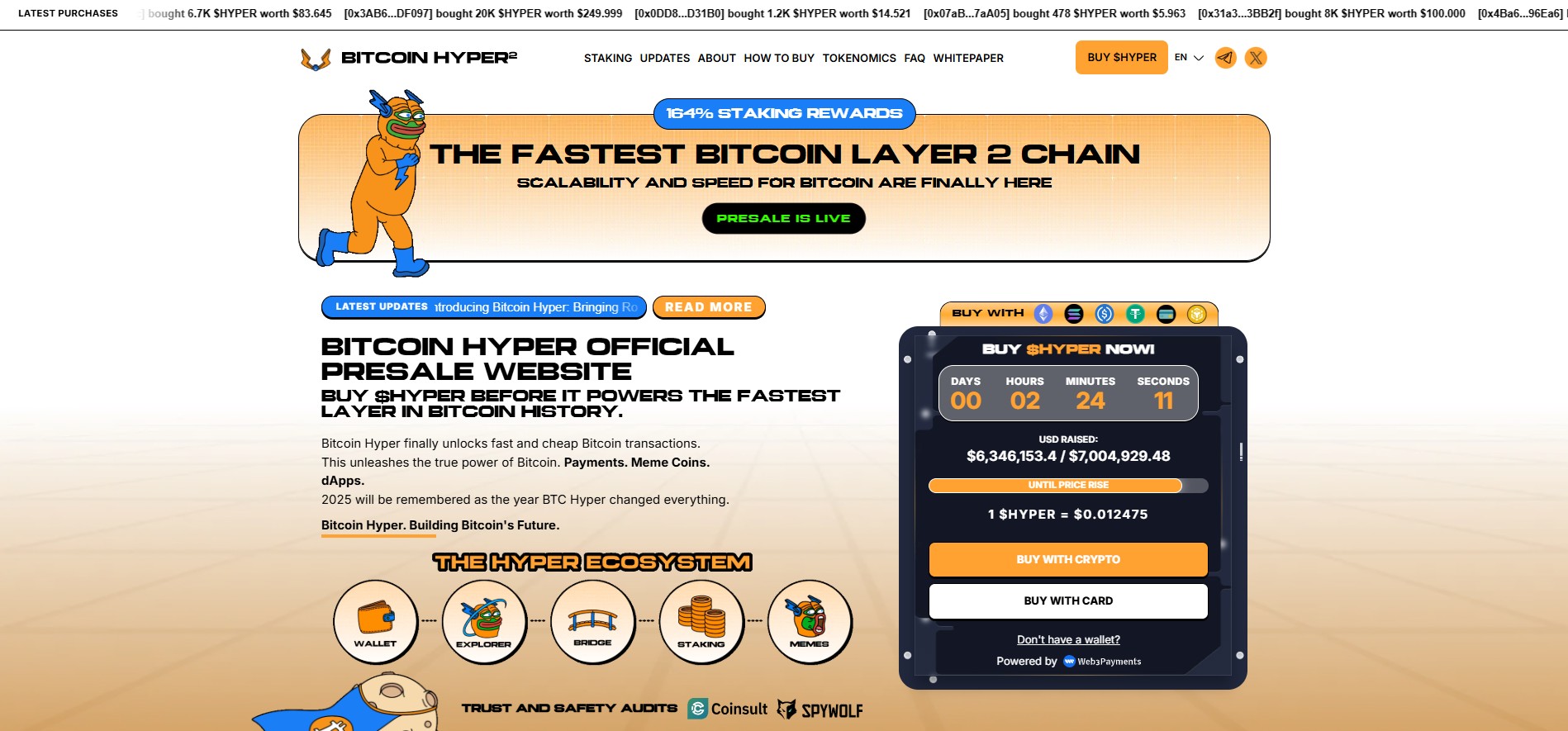 A világ első Bitcoin Layer-2 megoldása, amely a Solana Virtual Machine-re épül – a Bitcoin Hyper komoly felfutás előtt állhat. A hálózat hatékony és skálázható tranzakciókat kínál a $BTC-közösség számára, valamint elérhetővé tesz DeFi-funkciókat, például a lekötést és a hozamfarmolást.