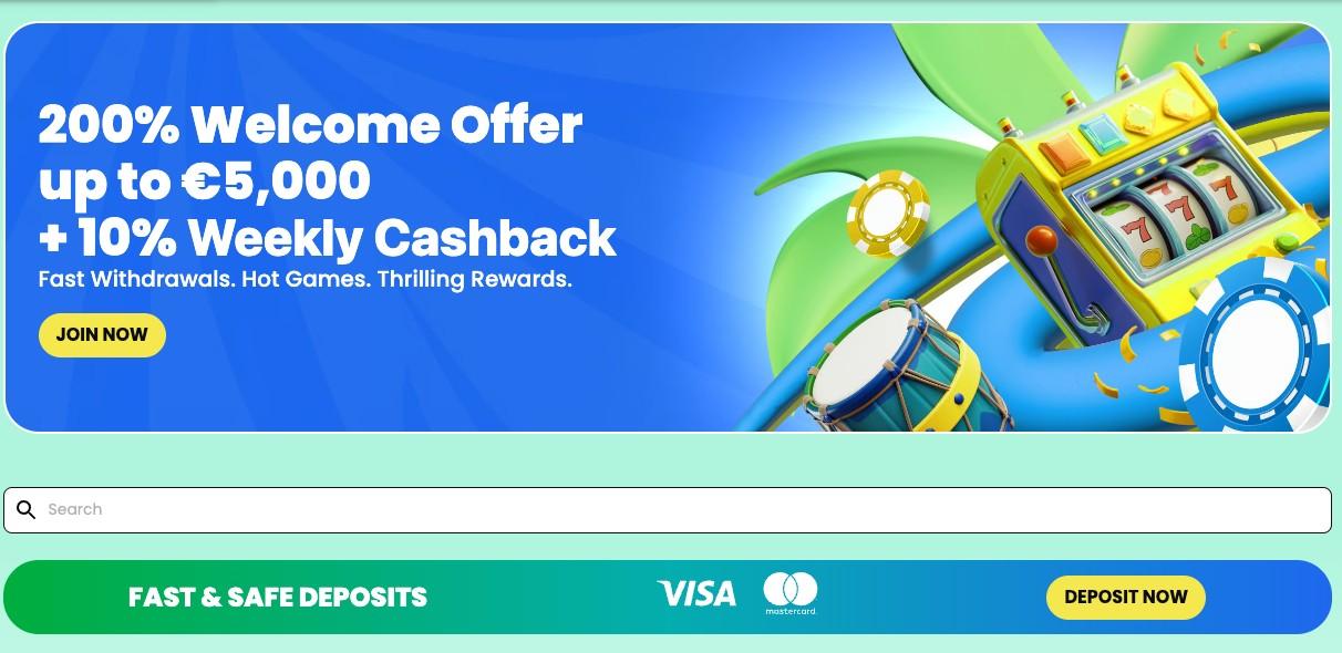 200% üdvözlő bónusz €7500-ig + 10%-os készpénzvisszatérítés