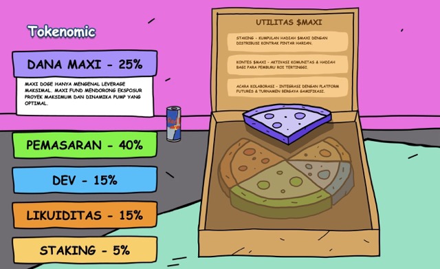 Tokenomic Maxi Doge dirancang untuk mendukung pertumbuhan jangka panjang melalui distribusi strategis yang memperkuat ekosistem dan komunitas yang dibagi menjadi: