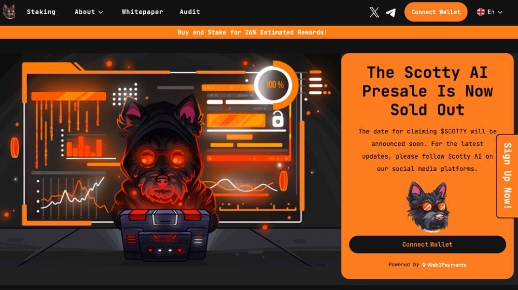 Tambahan token terbaru ke dunia kripto, Scotty the AI ($SCOTTY) telah mengumpulkan $10,8 juta dalam dua minggu. Catatan luar biasa itu menjadi bukti kecerdasan sang pencipta koin Scottish Terrier, yang menggabungkan koin meme populer dan kategori AI ke dalam tubuh satu makhluk hidup.