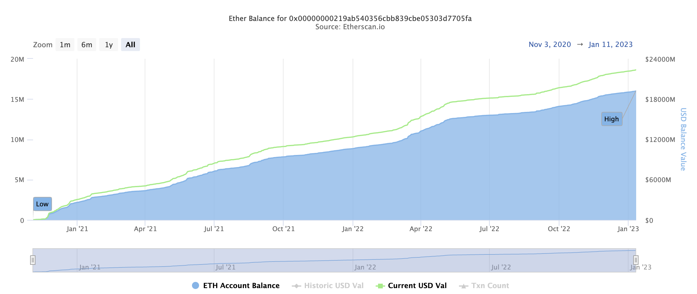 Il numero di ETH in stake è salito inoltre di circa il 16,68% dopo il Merge avvenuto a settembre 2022, quando Ethereum ha abbandonato il suo vecchio meccanismo di consenso proof-of-work.