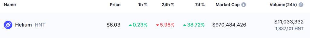 La criptovaluta Helium (HNT), attualmente scambiata a 5,99 dollari, ha dimostrato una notevole capacità di recupero, con una capitalizzazione di mercato vicina ai 970 milioni di dollari.