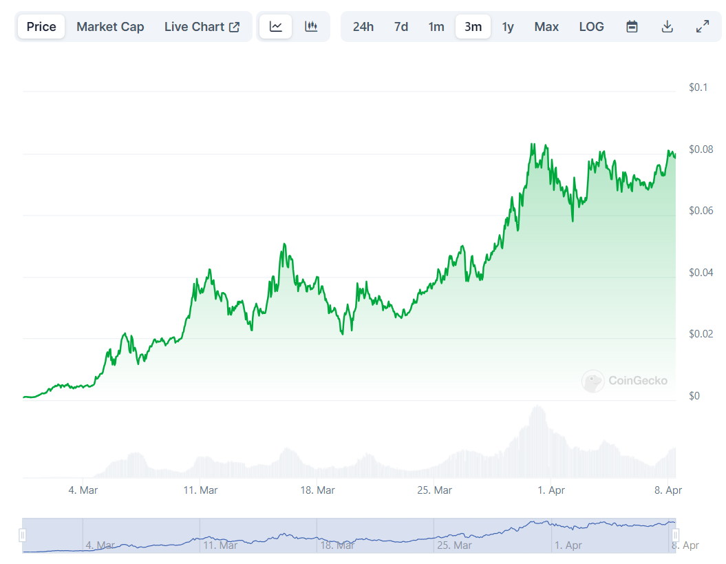 Pertanto, un investimento ben piazzato di 100 dollari nella moneta meme BRETT potrebbe portare un profitto di 1.000 dollari, soprattutto perché l’asset è aumentato di quasi il 7.300% dal suo lancio il 29 febbraio ed è attualmente scambiato a 0,07038 dollari, in aumento del 5,50% rispetto a ieri. In una settimana mette a segno una crescita del 11,74% e in un mese del 106,86%.
