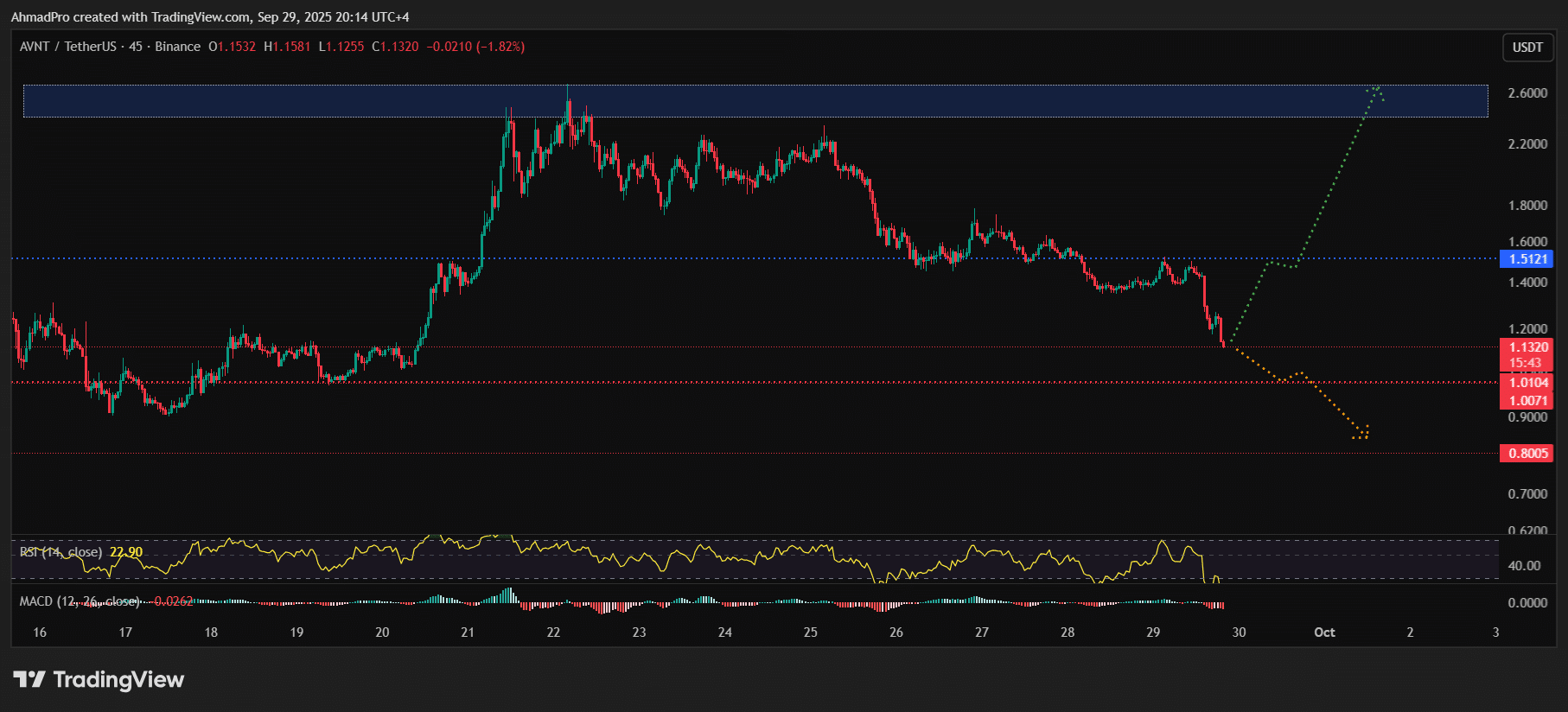 Guardando il grafico si nota subito che non si tratta più di una correzione tipica. Avantis (AVNT) ha subito un forte crollo perdendo il 45% quasi del suo valore nelle ultime 24 ore, ora viene scambiato a circa 1,13 dollari dopo aver fallito nel mantenere un supporto più alto.