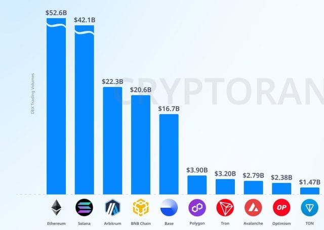 Solo ad agosto, il volume di scambi ha raggiunto i $16,7 miliardi, collocando la blockchain al quinto posto nella classifica (con Ethereum al primo posto con $52 miliardi). Inoltre, grazie al suo design multichain, acquistando $DAWGZ i trader hanno facile accesso a Solana (con $42 miliardi di volume di scambi ad agosto), BNB Chain ($20,6 miliardi) e, naturalmente, Ethereum.