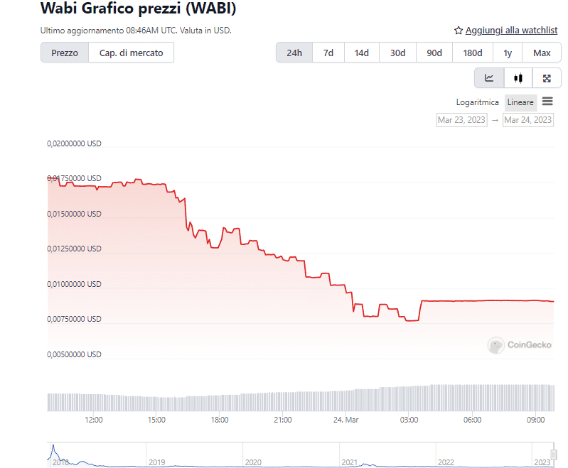 Oggi è il giorno del delisting di Wabi da Binance. Situazione davvero complicata per questo token che ha perso quasi il 50% nella sola giornata di oggi.