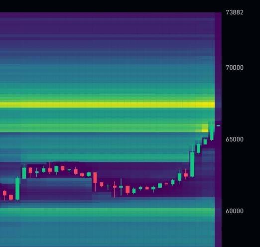Ci saranno oltre 3 miliardi di dollari di liquidazioni short di Bitcoin una volta che BTC avrà raggiunto i 67.300 dollari!