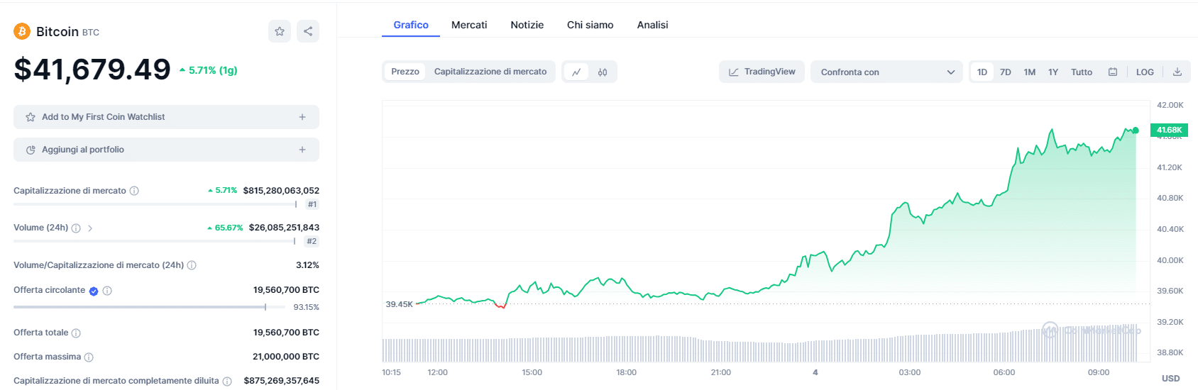 Bitcoin arriva a $41.000 e il mercato vola – Bull Market o trappola?