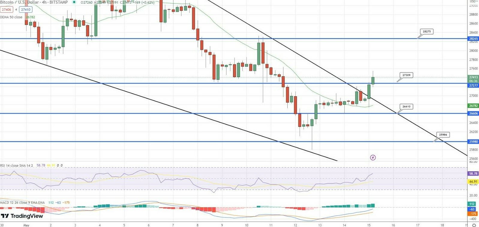 Diversi fattori hanno contribuito a questo movimento al rialzo. Dopo aver trovato un supporto a 26.650 lunedì, Bitcoin è salito oltre la soglia dei 27.000 dollari.