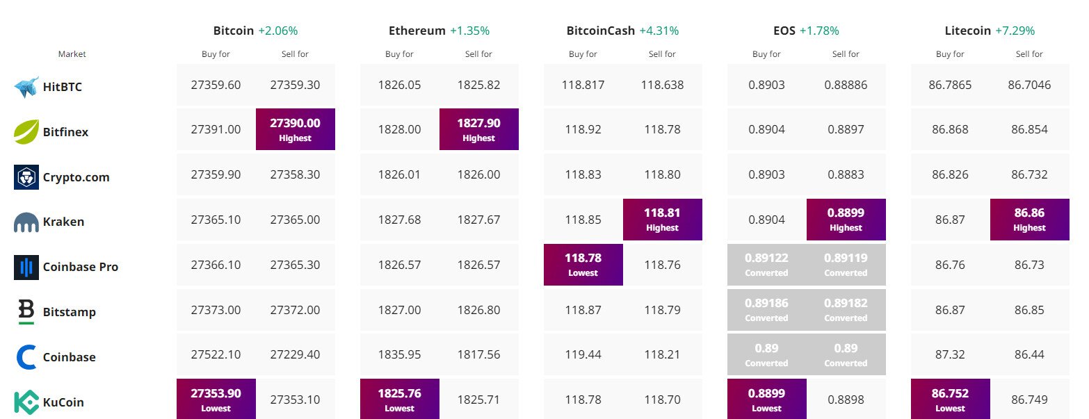 Trova il prezzo migliore per acquistare/vendere criptovalute