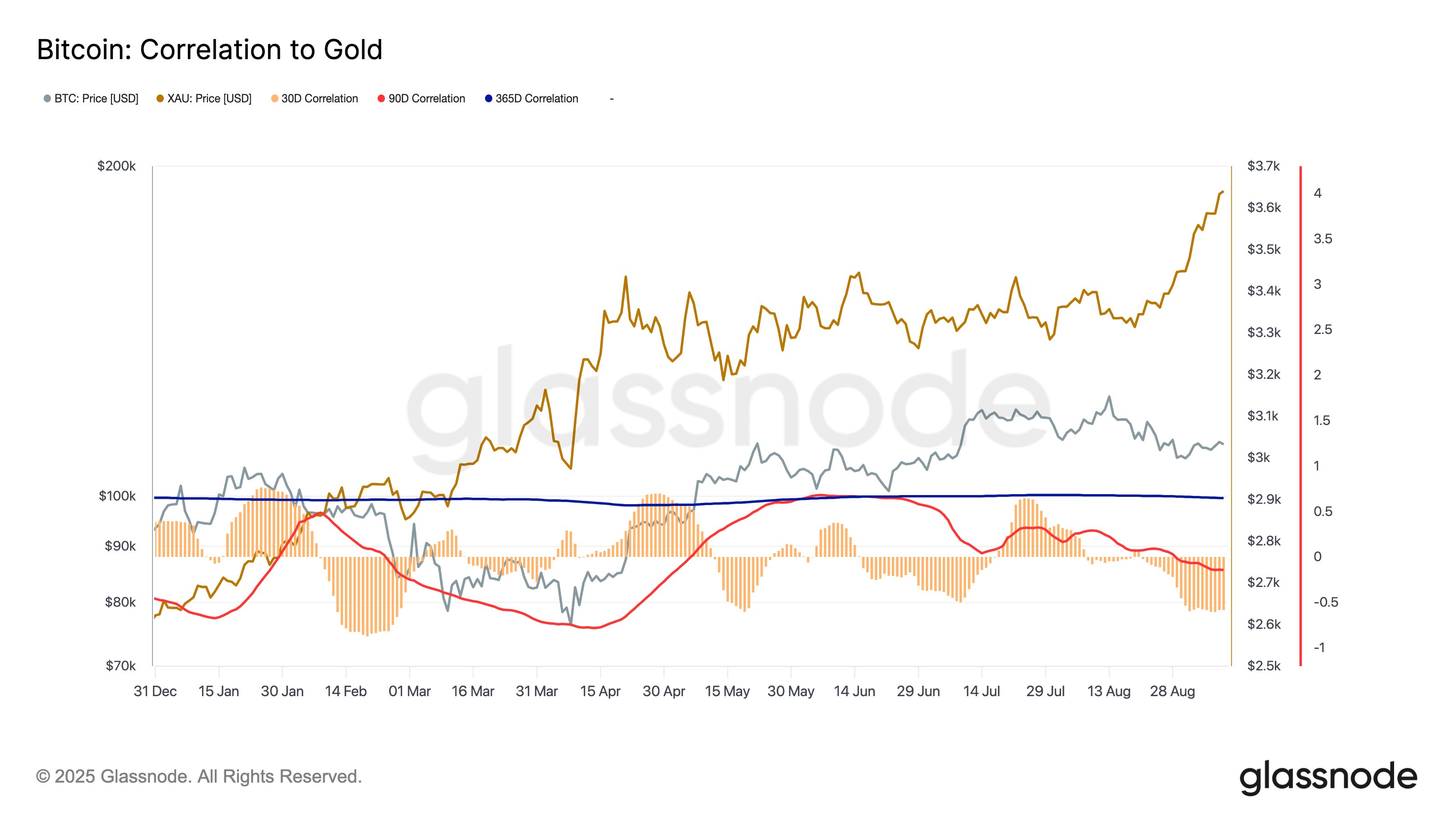 In un nuovo post pubblicato su X, la società di analisi on-chain Glassnode ha discusso di come si presenta attualmente la correlazione tra Bitcoin e oro su vari intervalli di tempo.