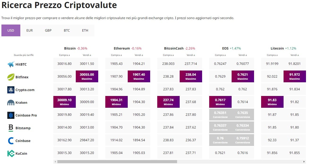 Trova il prezzo migliore per acquistare/vendere criptovalute