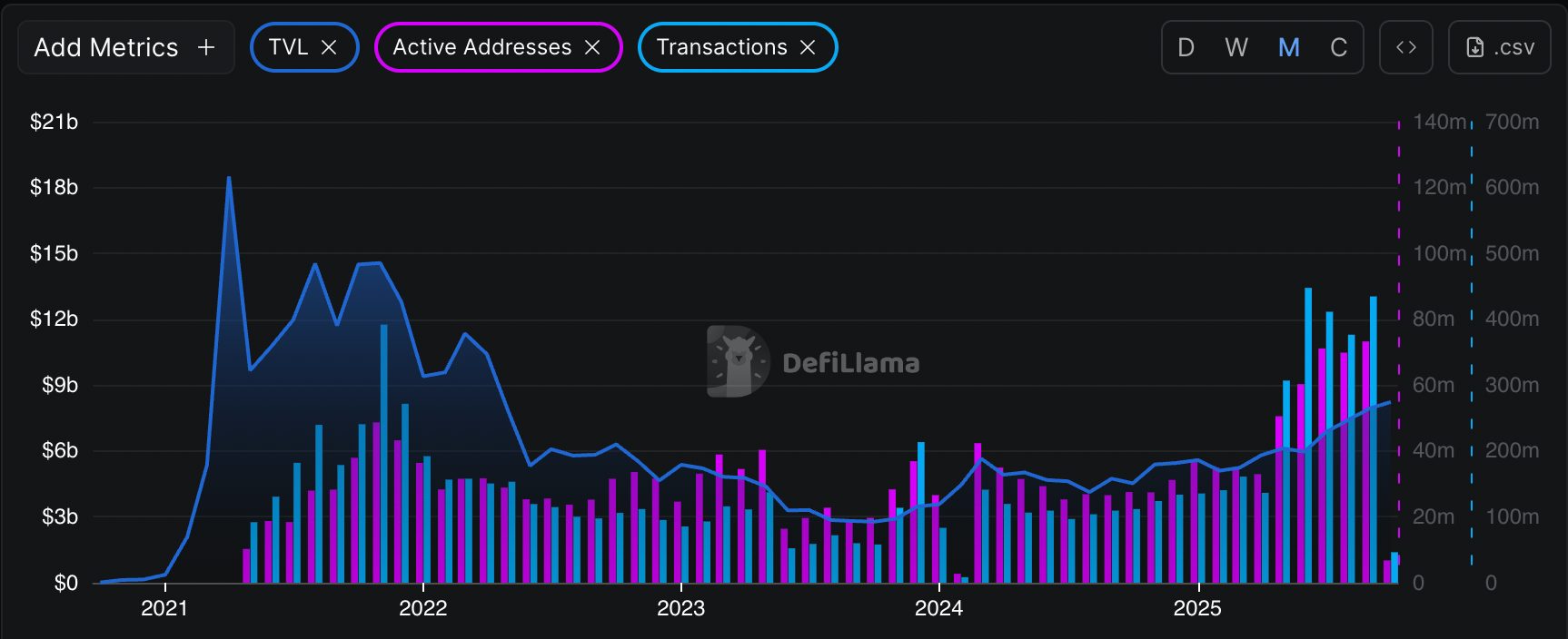 La rete ha generato 1,01 milioni di dollari in commissioni di blockchain e 3,4 milioni di dollari in commissioni di applicazione, mantenendo una capitalizzazione di mercato delle stablecoin di 13,47 miliardi di dollari.