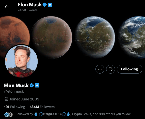 Ecco come appare ora la pagina biografica di Musk su Twitter: