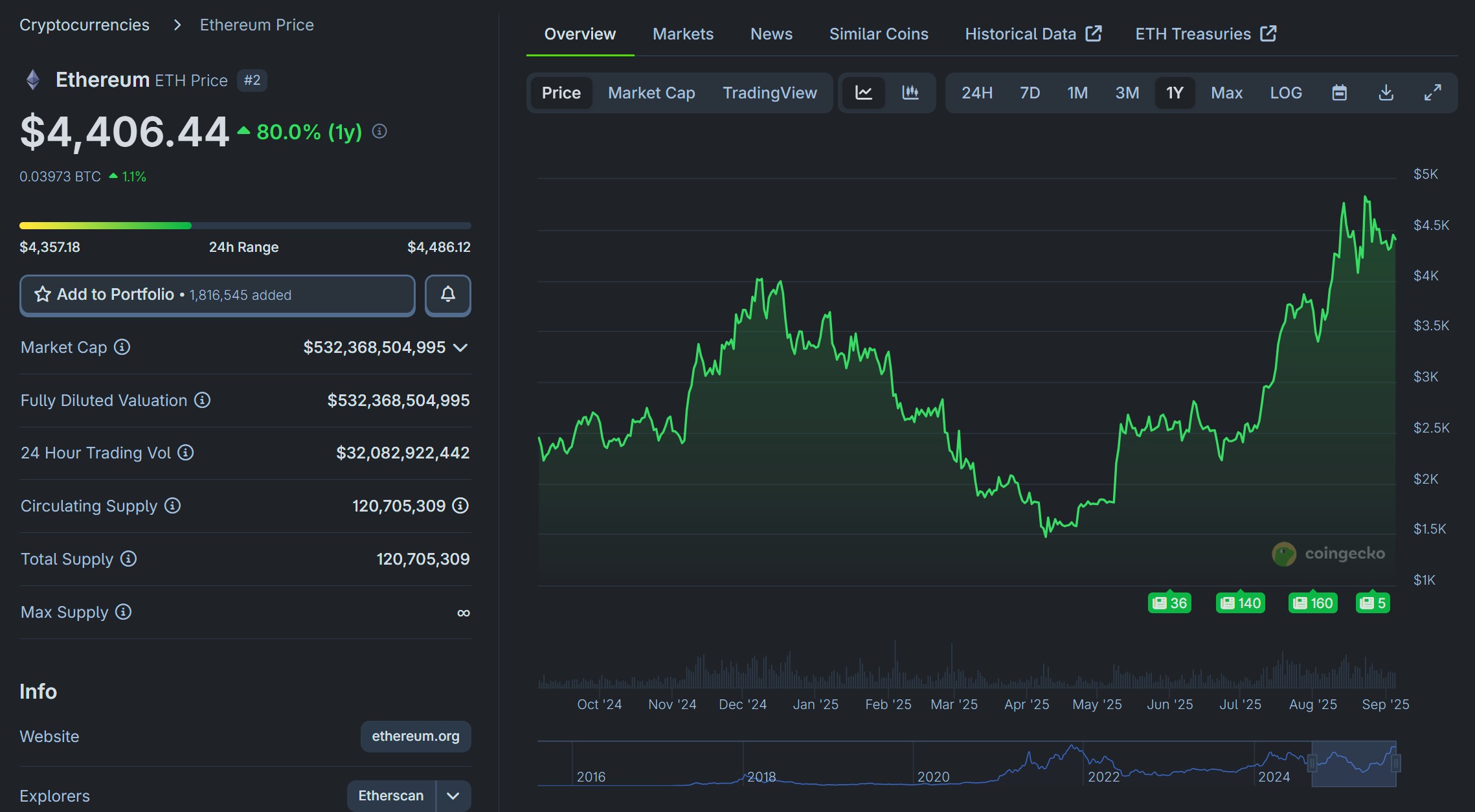 Ethereum a 4.400 dollari: forze strutturali ma ETF sotto pressione