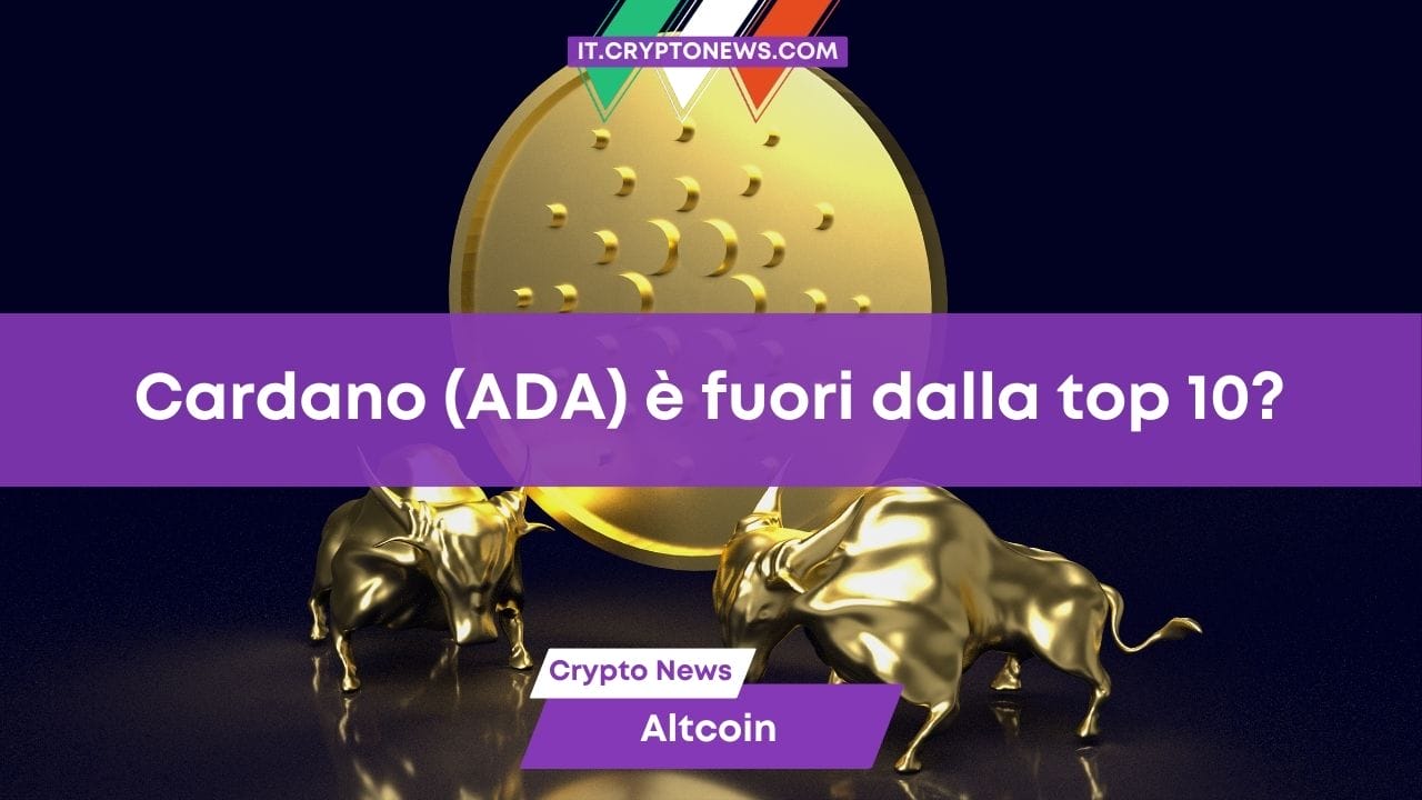 La sua criptovaluta nativa $ADA è scesa al 10° posto tra i token con la maggiore capitalizzazione di mercato secondo CoinMarketCap.