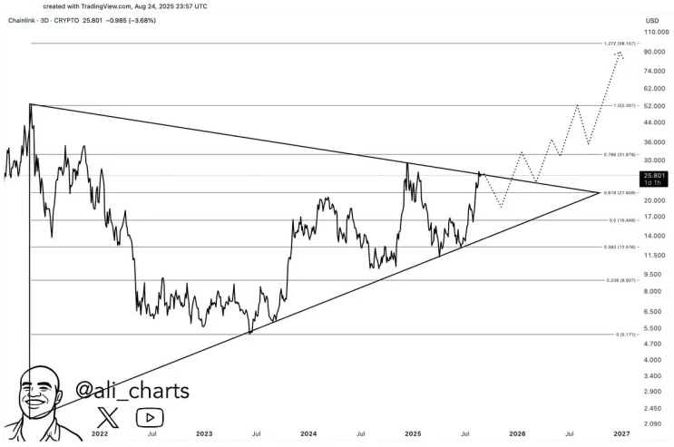 Formazione triangolare pluriennale Chainlink – Fonte: Ali Martinez su X