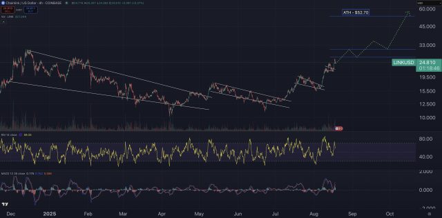 Con questi fondamentali e questo slancio, il prezzo di LINK potrebbe puntare a 30 dollari nelle prossime settimane, e superare il suo massimo storico di 52,70$ entro fine anno e diventare una delle migliori criptovalute da acquistare nel 2025.
