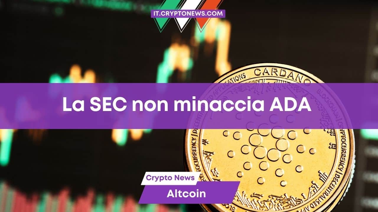 Ha spiegato che anche se ADA è tra i le crypto citate dalla Commissione nelle cause contro Binance e Coinbase non significa sia sotto processo.