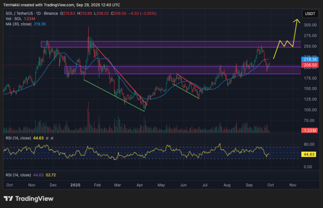 Dal punto di vista del prezzo, Solana ha raggiunto i $250 a gennaio, è scesa a $100 ad aprile e si è poi ripresa fino a $207. La scorsa settimana ha oscillato intorno a $220 più volte, sfiorando quasi i massimi di quest’anno.