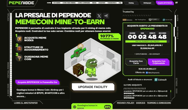 Il sistema gamificato, combinato con meccaniche DeFi, staking e burn, ha già attirato l’interesse di numerosi investitori alla ricerca di alti rendimenti in fase early. Grazie alla possibilità di acquistare e mettere in staking i token direttamente dal wallet, Pepenode si propone come un’esperienza interattiva e remunerativa, in perfetto stile meme coin.