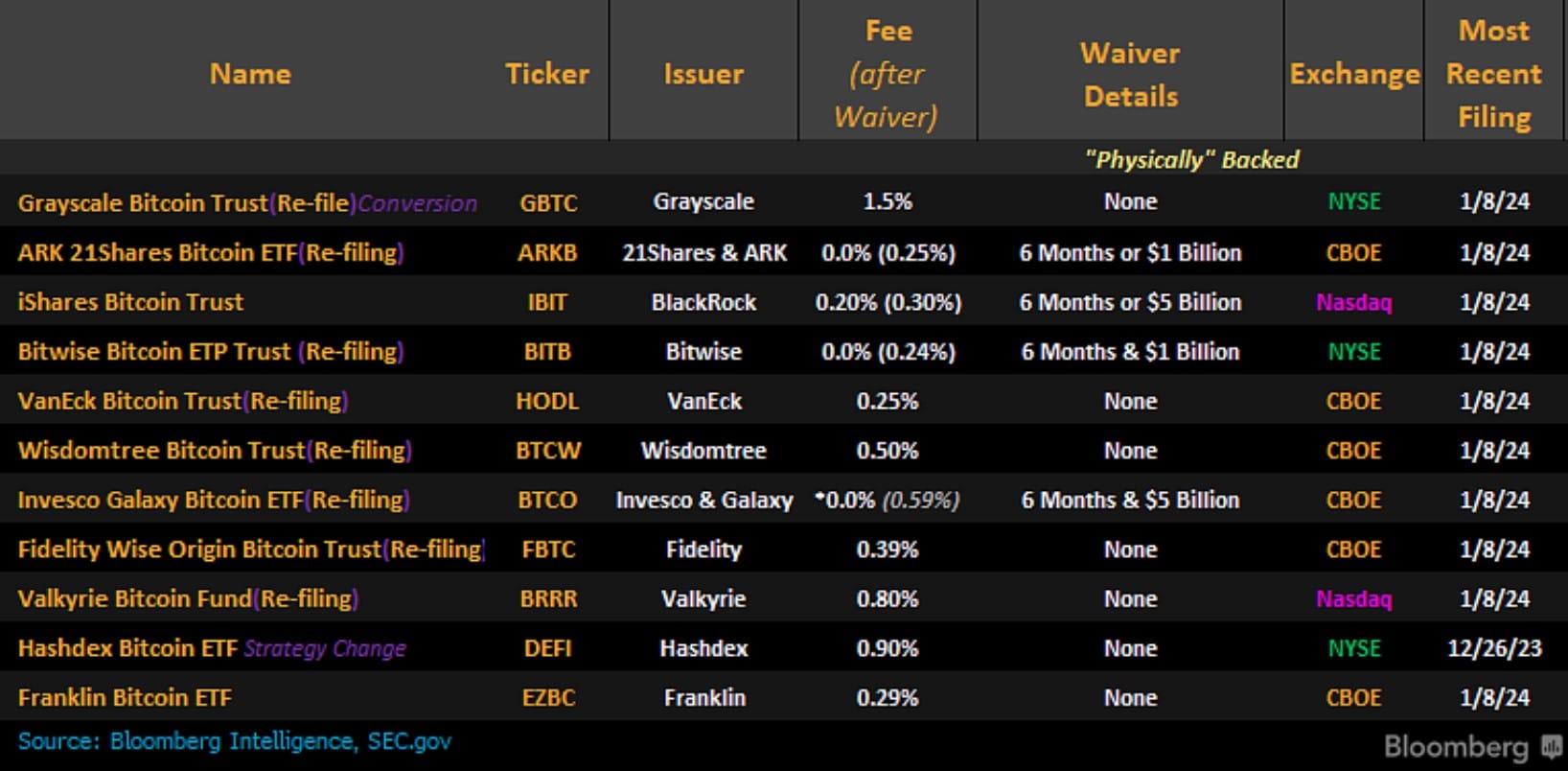 Questa varietà offrirà agli investitori un’ampia gamma di scelta e potrebbe influenzare in modo significativo le dinamiche del mercato di Bitcoin. In effetti, le società emittenti hanno commissioni diverse e alcuni, secondo quanto riportato da Coindesk, hanno persino “pacchetti di lancio interessanti”.