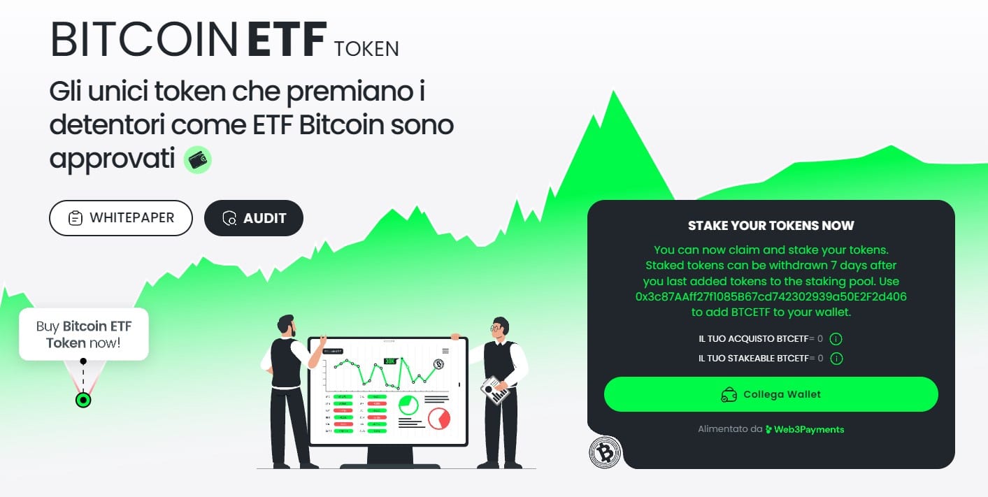La piattaforma Bitcoin ETF Token (BTCETF), infatti, grazie alle sue dinamiche legate all’approvazione degli ETF Bitcoin spot e al successivo andamento del prezzo di Bitcoin, sta offrendo grandi opportunità a tutti gli investitori interessati nel progetto.